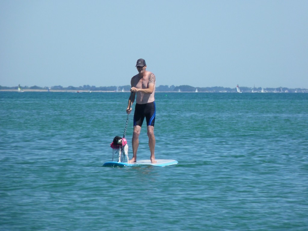 Get Wet! – Experiment with falling off and getting both yourself and your fur baby back on board, so that you both know the drill and what to expect.