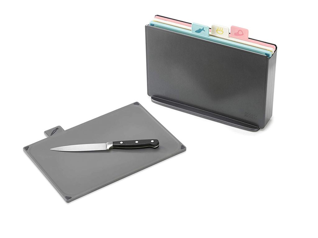 - Joseph and Joseph Chopping Board Nest I never leave home without my set of non-slip, colour-coded chopping boards, which prevent cross-contamination of different food types.
