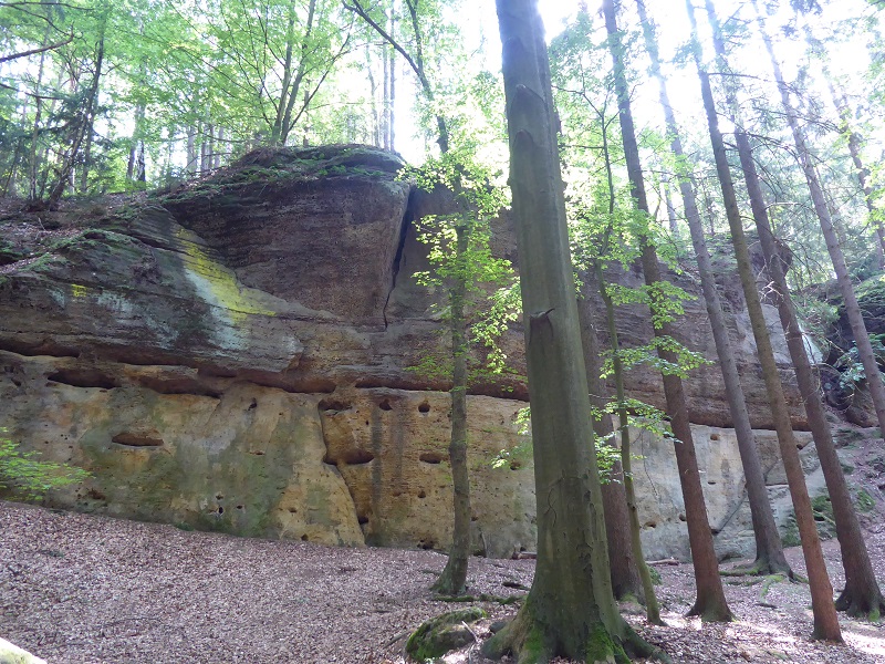 The walk was gorgeous, weaving between sandstone cliffs in the dappled light of beech woods. There was no-one around; we had it all to ourselves.