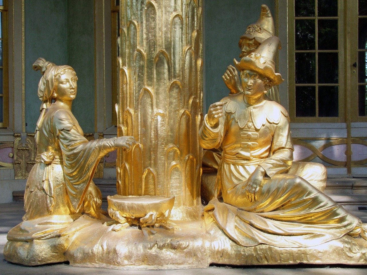 Built in a trefoil (clover-leaf) shape around a circular centre, the Chinese House is a delicate mint green, surrounded by gilded pillars and statues of Chinese revellers eating, drinking and generally living the good life. The characters look a little less oriental than they might, since the sculptors used local people as models!