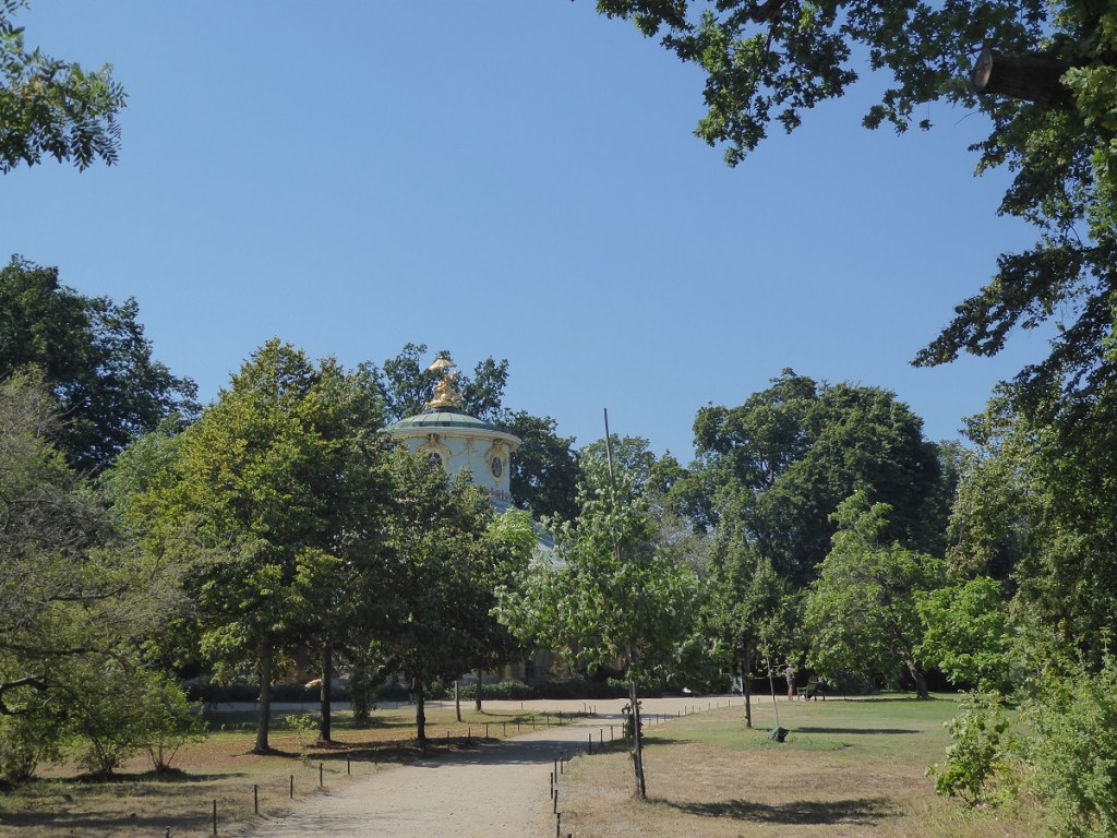 Parked near the windmill, our potter started at the main Sanssouci palace, a long, single-storey building with a verdigris cupola at its centre, painted in a joyful shade of primrose. It followed the Brontosaurus school of architecture; thin at one end, fatter in the middle, then thin again at the other end.