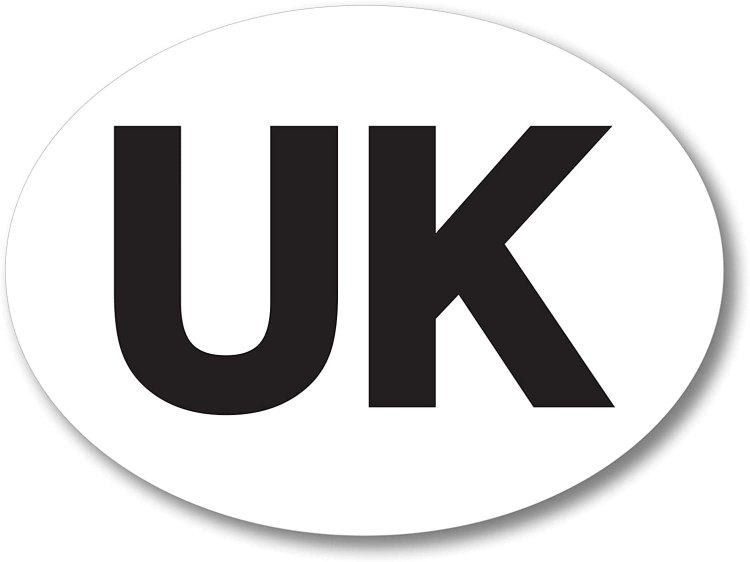The UK government specifies: On or after 28 September 2021 you will need to display a UK sticker clearly on the rear of your vehicle if your number plate has any of the following: