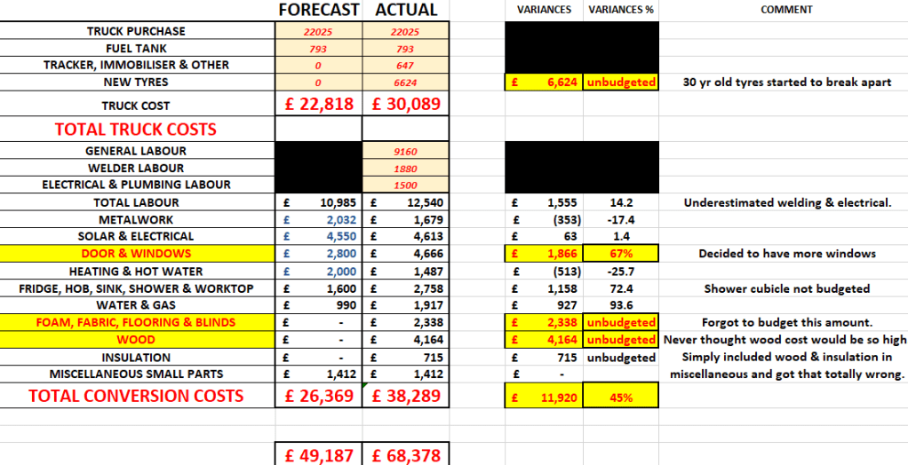 With a large project like this, especially for novices like ourselves, it is always wise to budget a little extra. We budgeted a 10% contingency for the conversion (£4,918.70), although we did exceed our original budget by a whopping £19,191; nearly 40%!