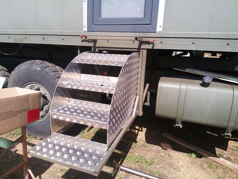 5. Labour (+£1,555) – our electrical installation was completely over specified. When our original electrician walked off the job, we decided to remove about one third of what he’d installed to simplify the setup. The welding costs also rose due to faffing about with the roll out steps to make them work.