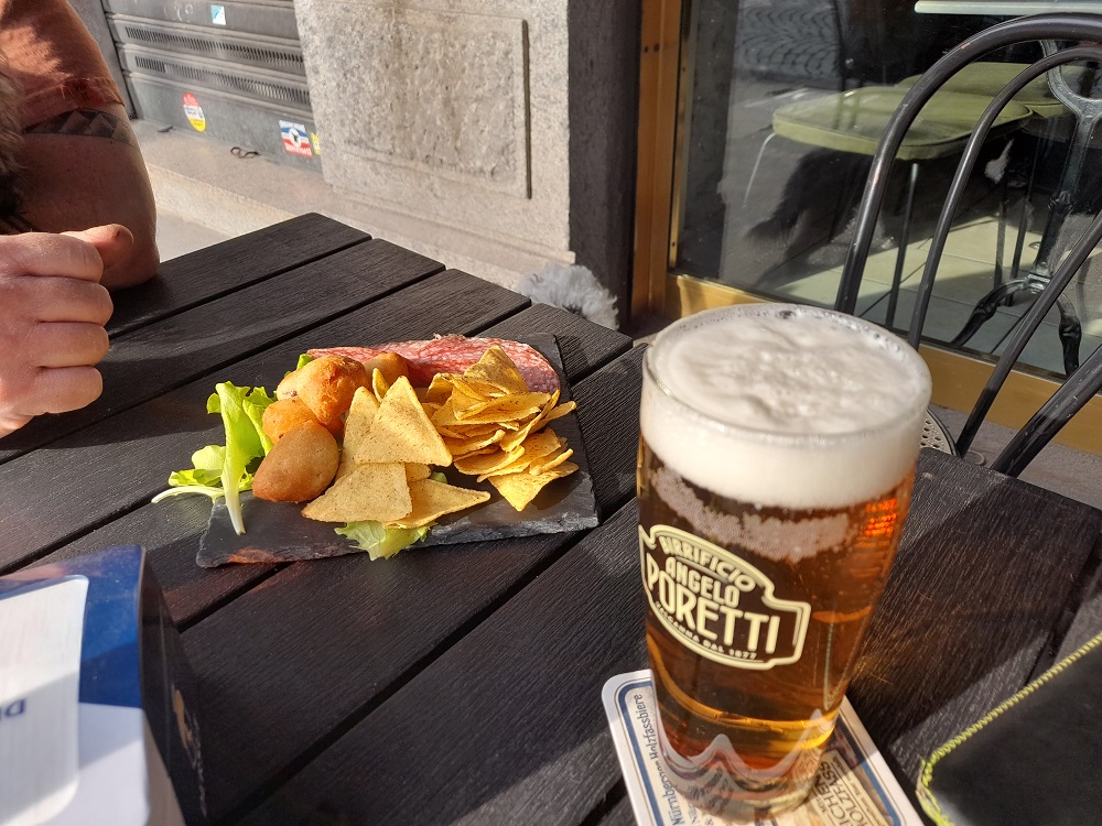 Diego, the barman, was very friendly and recommended some delicious local beers. We tried an Angelo Poretti, flavoured with AROMA HOPS. Did you get that? AROMA HOPS! We Brits have a long tradition of scattering East Kent Goldings, Cascade and Fuggle all over the place while brewing classics like ‘Roger and Out’ (Sheffield – and the world’s – strongest beer), Bishop’s Finger (from Shepherd Neame, Britain’s oldest brewery) and Brains SA (‘Skull Attack) from Wales. Yet I have never encountered these flavours in a standard Continental brew!
