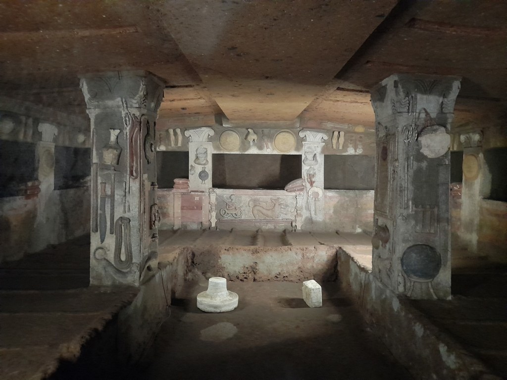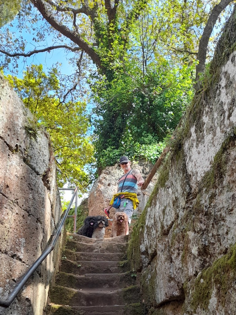 Some tombs were open, so we could descend long flights of stone stairs into the realms of the dead, and witness the afterlife and beliefs of our ancestors. The atmosphere was palpable. The Tomba dei Rilieve (the Tomb of the Reliefs) was a real showstopper. One of the most important and famous tombs in Etruria, a carved stone revealed to archaeologists that it was the mausoleum of the Matuna family. After a millennium and a half, we know who this tomb belonged to. That thrills me!