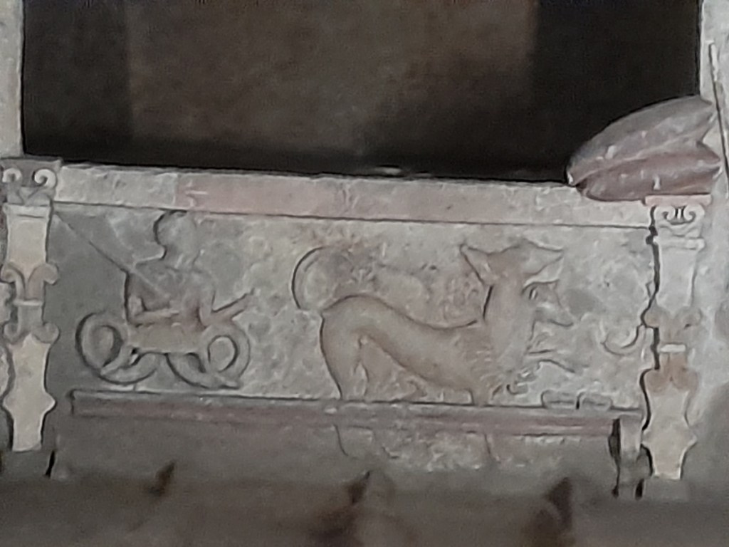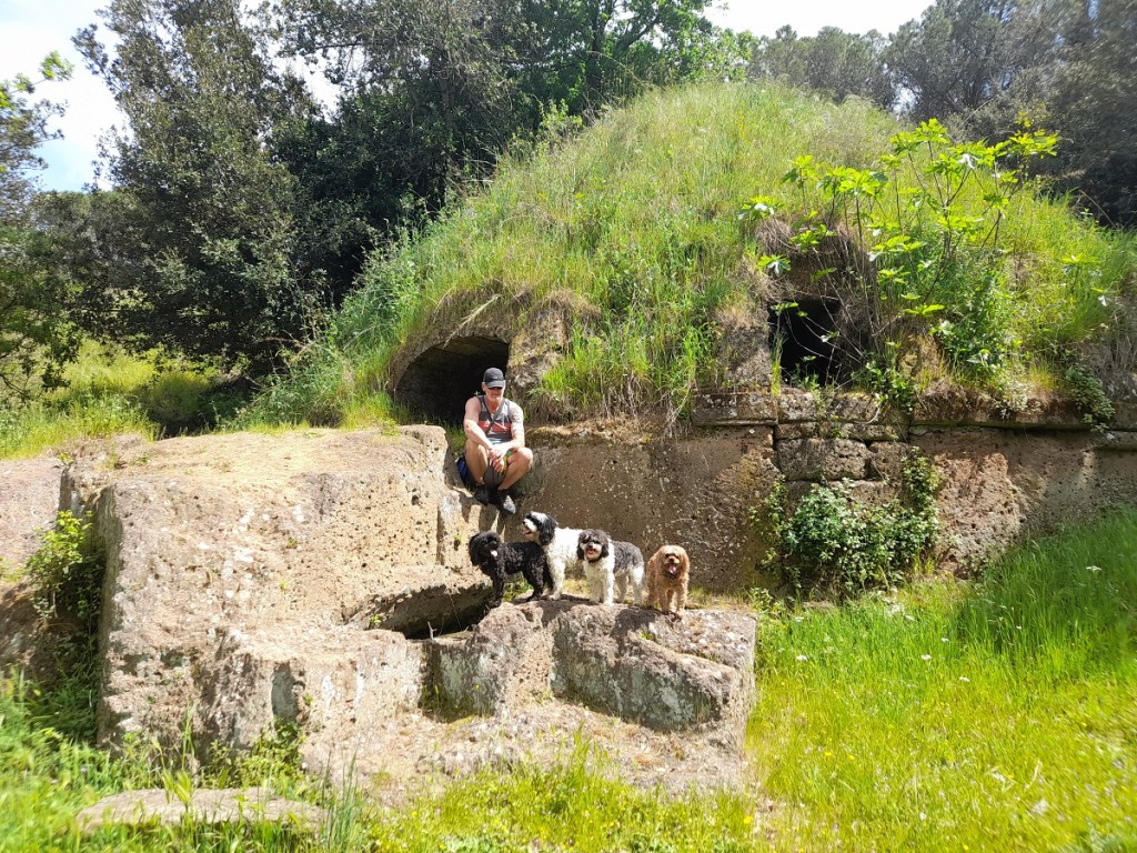 Friezes depicting weapons across the back wall, and representations of household objects on the pillars have given historians a front-seat insight into Etruscan daily life. Beneath the main burial niche was a fabulous relief of Scilla and Cerberus; the three-headed dog who guarded the underworld. As I emerged from the tomb, what looked like my own three-headed dog greeted me as Lani, Kai and Ruby waited with Mark at the top of the stairs. Nosy Rosie was absent; content in the knowledge that mum would definitely emerge safely from Cerberus’ lair, she was busy sniffing.