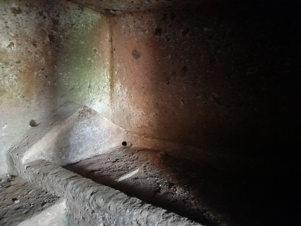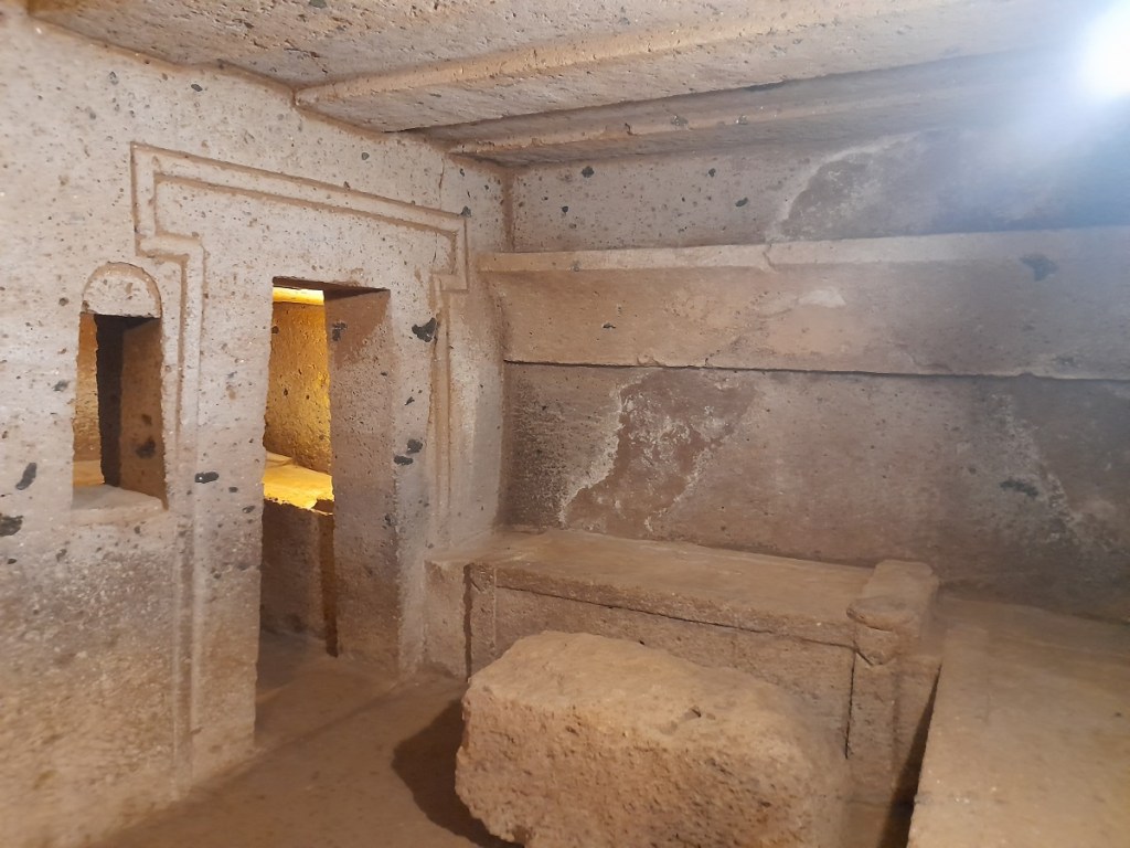 Looking out from the rearmost chamber of Tomba Mengerelli