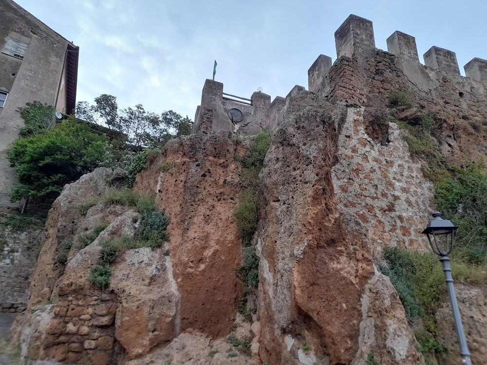 After D.D.T. (Doggie Dinner Time), Mark and I stormed the fortress in search of pizza and a beer. We strolled up the narrow road that clung to the side of the red-gold tufo-rock cliff. As we entered the formidable citadel gates, we noted a distinct dining possibility on a cliff directly above us, in the form of Pizzeria La Rocca.