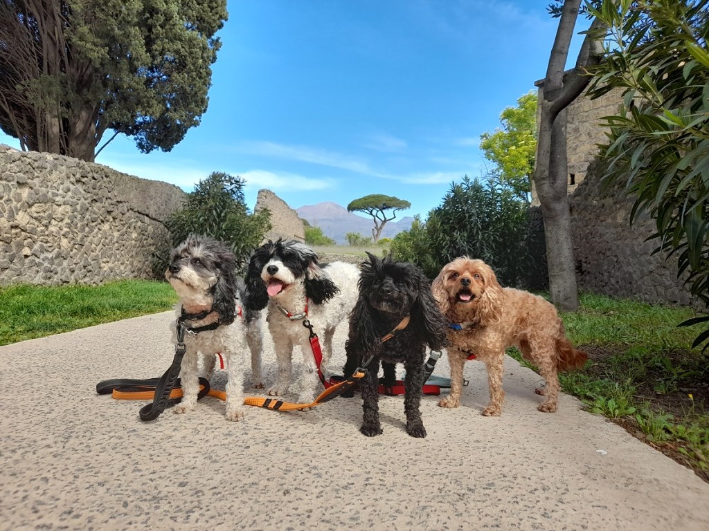They allow small dogs into Pompeii, but you must carry them if you go inside the houses. Carrying four is a bit of a stretch, so Mark and I simply took turns.