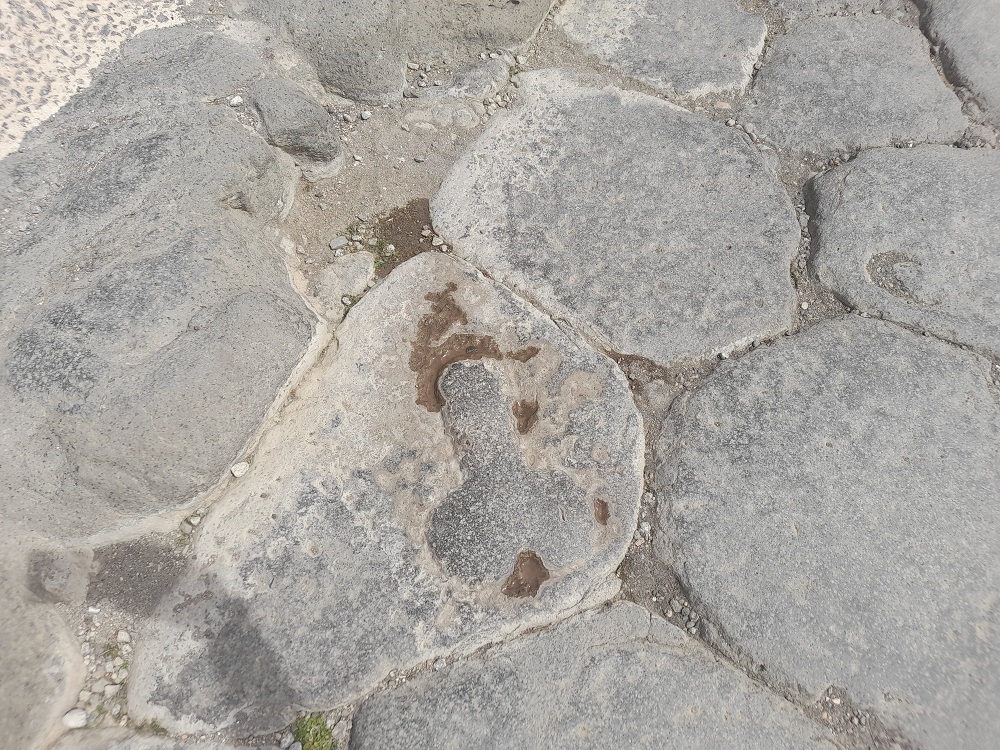 We traced our fingers through grooves in the road made by their chariot wheels, clear enough to note their width, which was designed to accommodate the rear ends of two Roman horses.