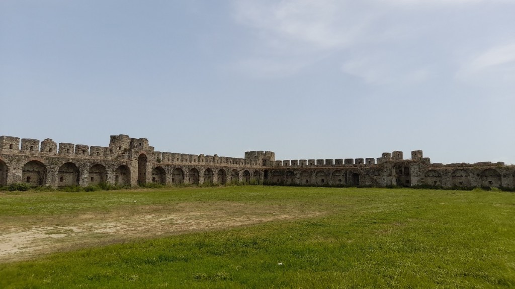 Bashtovë is the only Balkan fortress built in a field. It lies on the Schkumbin river, a few kilometres short of where it flows into the Adriatic, close to where we stayed on the beach at Buona Vila. The Via Egnatia, the famous Roman road that connected Constantinople with the Adriatic at Dyrrachium (Durrës in today’s Albania), follows the Schkumbin for much of its course. The fertile plain was an important source of grain, which was exported from the nearby port. Bashtovë protected this critical route for troops and trade.