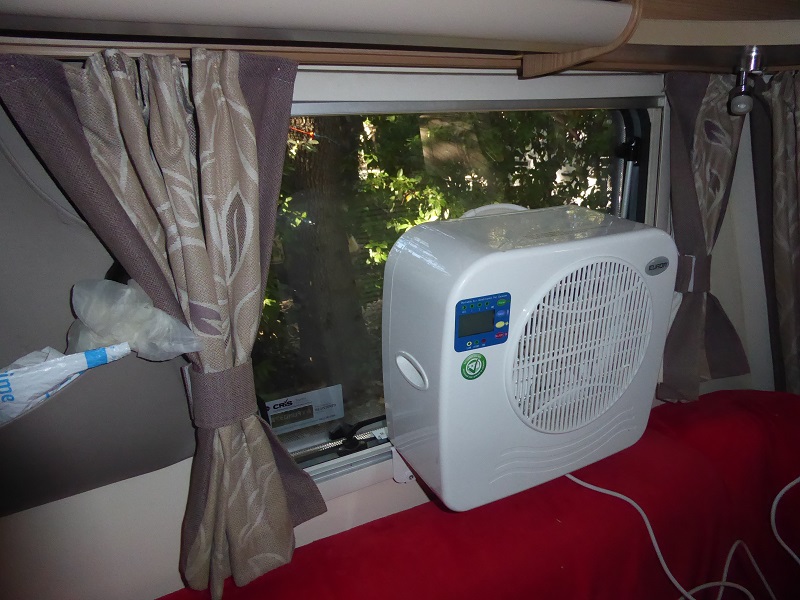 Cool My Camper Portable Aircon Unit. There are two parts, one inside the window & a similar sized one outside.