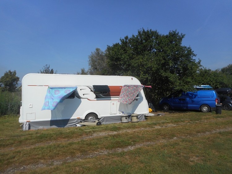 We’re not hot at all at the moment. We headed for the hills because it was boiling in the centre of France, and did our laundry. The second we finished the last spin, the heavens opened! Now, we’re sitting amid a festoon of soggy undies. Livin’ the Dream.
