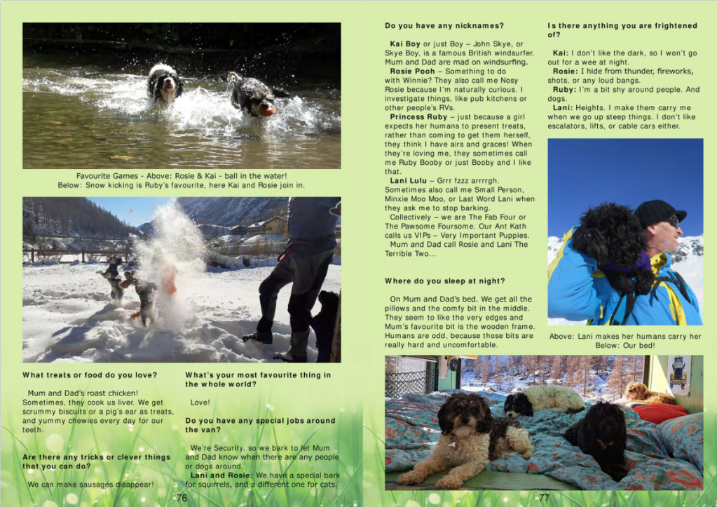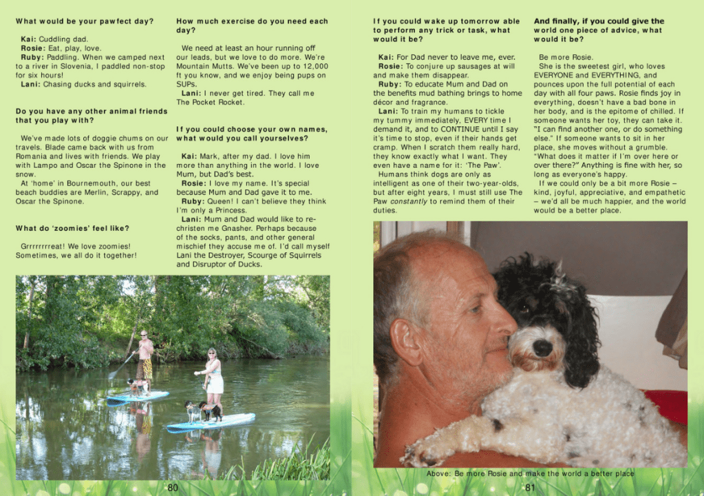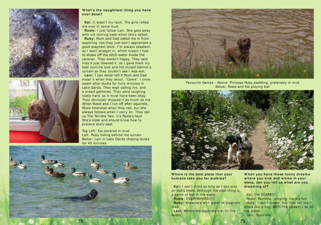 If you want to know what goes on in their minds, their favourite games, their greatest piece of mischief, the piece of advice they would give to the world – as well as lots of lovely doggie photos, check out the links below.