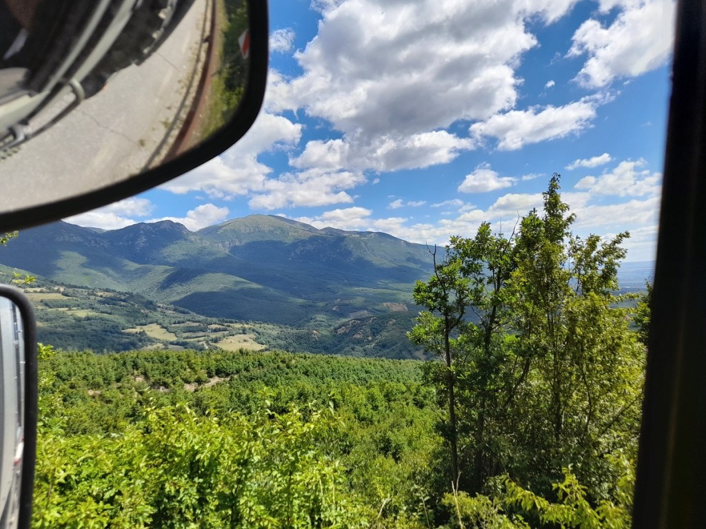 En route, a hilltop memorial looked promising for walkies. A clear path led up to it, but when we pulled over, we spotted a stray dog the size of a bullock on some waste ground opposite. Since it was a war memorial, we also thought about landmines. We had received a message in Albanian to suggest our unlimited Albanian SIM wasn’t. Not outside Albania at least. With no internet, we felt blinded: unable to check our facts. The path would be fine, but in any areas where mines hadn’t been cleared, a scatter of Cavapoos meant trouble – and we certainly didn’t want another altercation with a super-sized stray.