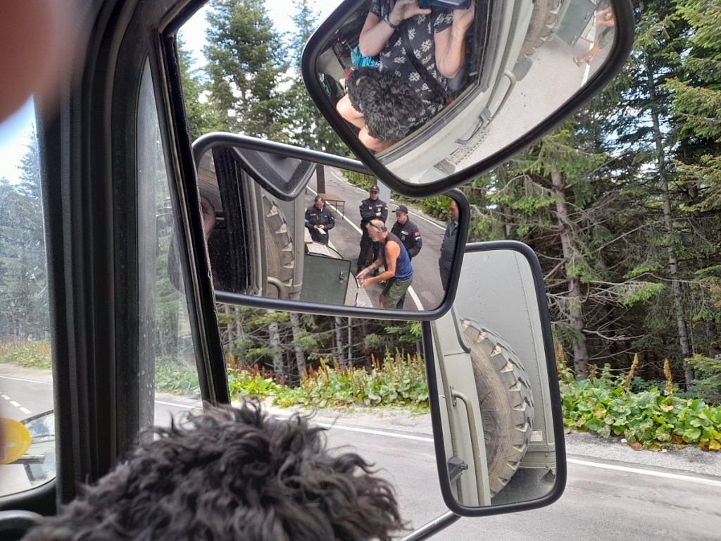 Once the guard had established, “Is this a civilian truck?” all the officials spilled out of their offices to have a peek inside.