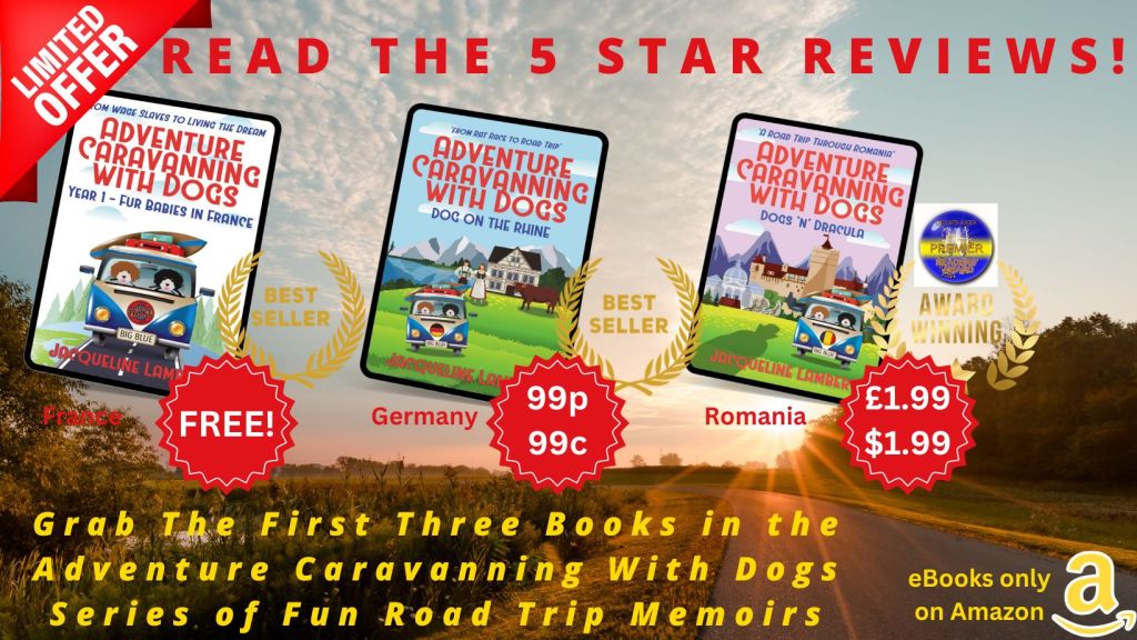 If you’re wondering how to fuel your wanderlust this winter, the first three eBooks in my bestselling Adventure Caravanning With Dogs series of comic travel memoirs are on offer on Amazon.co.uk and Amazon.com ONLY between 8 a.m. PST on 23rd to 25th October 2023.