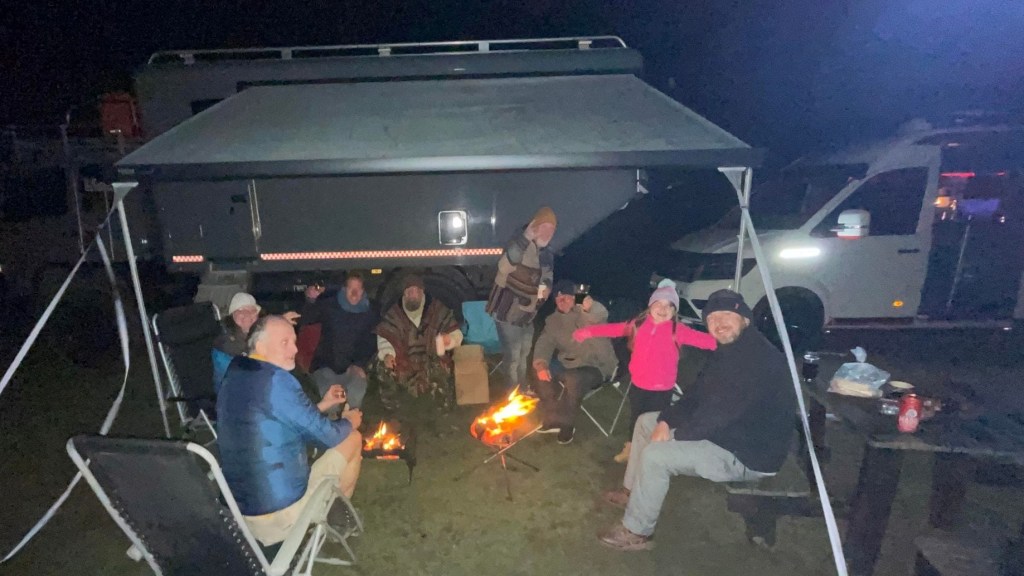 We made it! Milly & The Beast act as windbreaks at the park up near Castleton in the UK’s Peak District