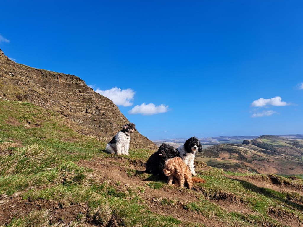 The Fab Four on the summit of Mam Tor in the UK’s Peak District