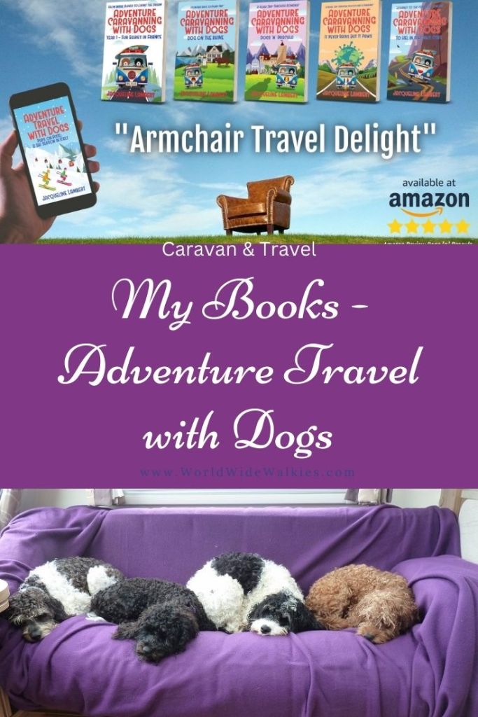 She writes humorous travel tales about her real-life exploits since she quit work, sold up, and hit the road with her husband, Mark, and four dogs.