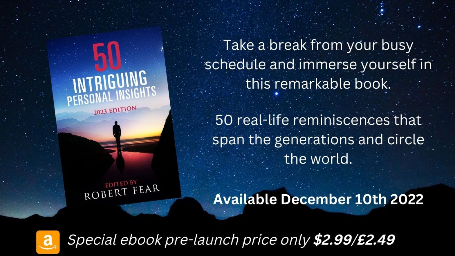 I am so proud that my story, Welcome to Kosovo has been selected for inclusion in Robert Fear’s latest anthology, 50 Intriguing Personal Insights. The 2023 Edition of 50 Intriguing Personal Insights is available to pre-order on Amazon Kindle. The release date is December 10th. Click here to reserve your ecopy at the special launch price ofContinue reading “50 Intriguing Personal Insights”